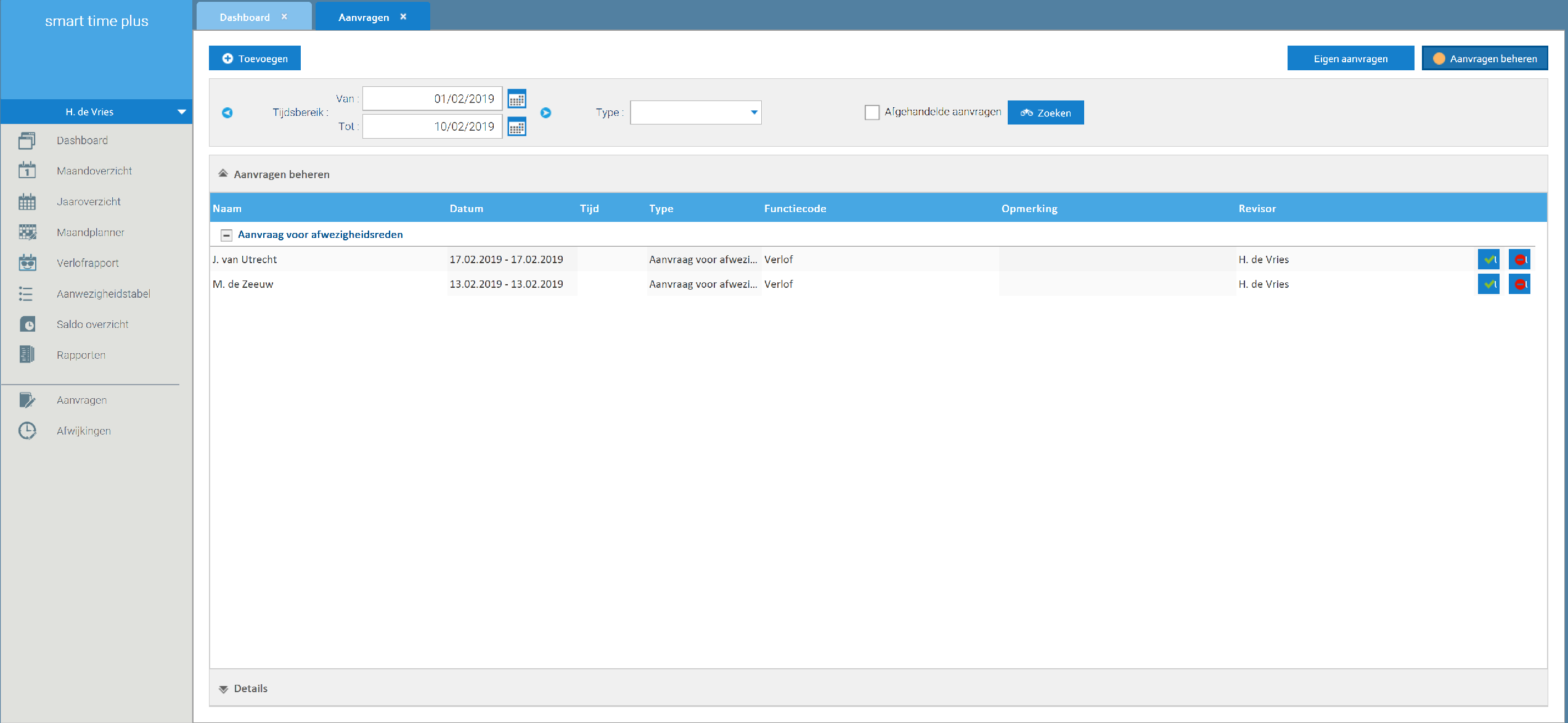 Beheer aanvragen