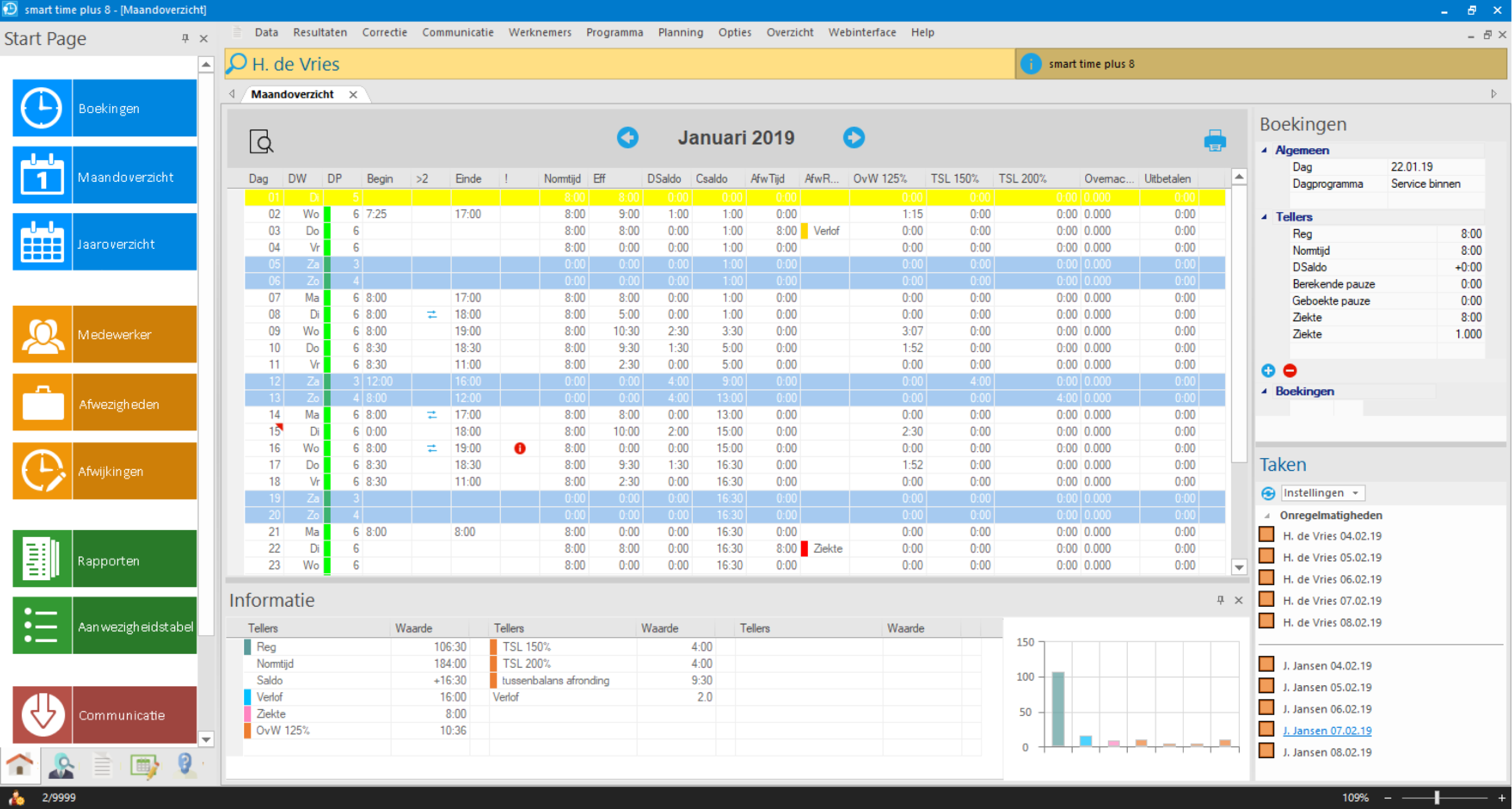 Corrigeer snel en eenvoudig vergeten boekingen. Zie tevens direct wie te laat binnen is gekomen of te vroeg naar huis is gegaan