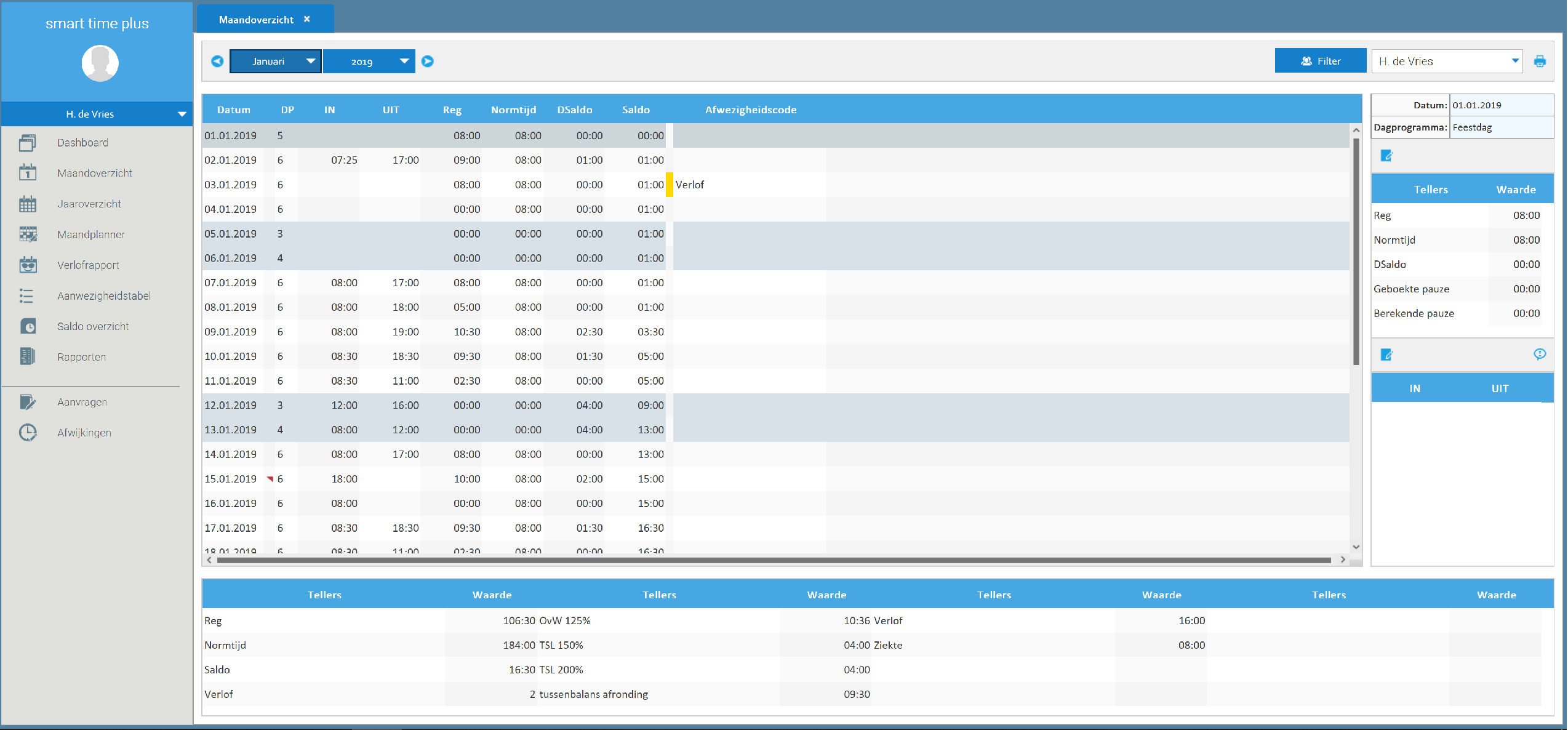 Naast de verlof-, ziekte- en andere verzuimuren kunt u in Smart Time ook uitstekend uw feestdagenregeling vastleggen. Bent u niet alleen in Nederland werkzaam en heeft u te maken met lokale feestdagen? Ook deze kunt u in Smart Time vastleggen. Ook kunt u eenvoudig aangeven als er op deze feestdagen toeslagen van toepassing zijn wanneer er gewerkt wordt. Dit alles kunt u uiteraard overzichtelijk terug laten komen in de rapportage.